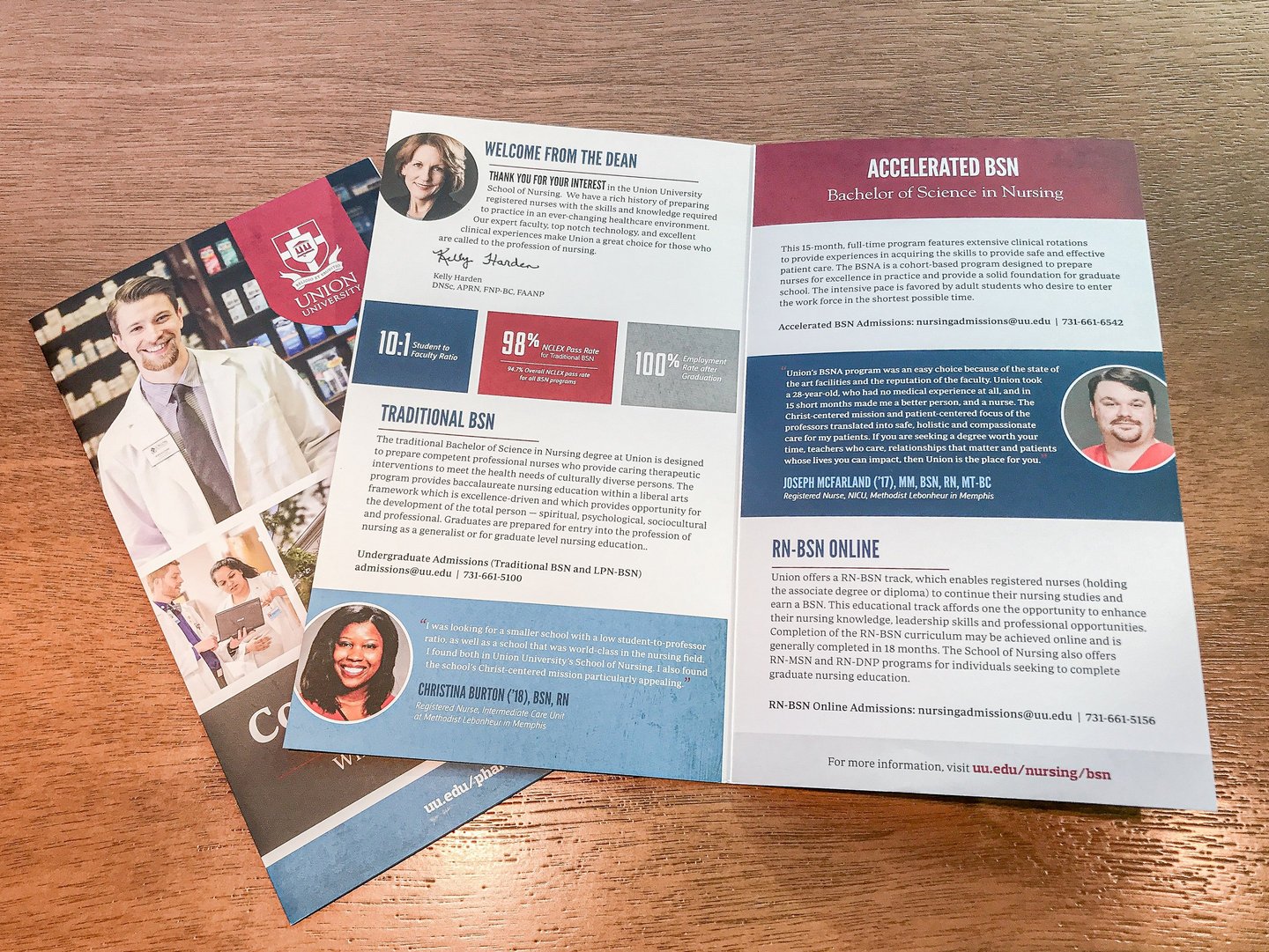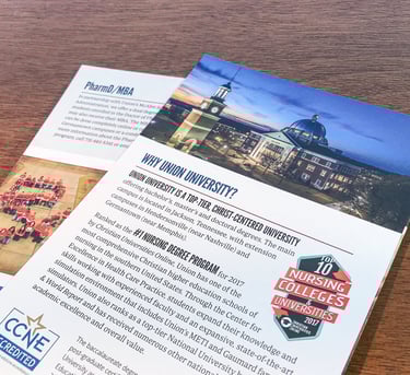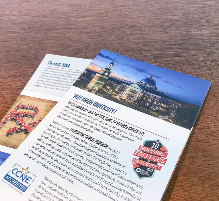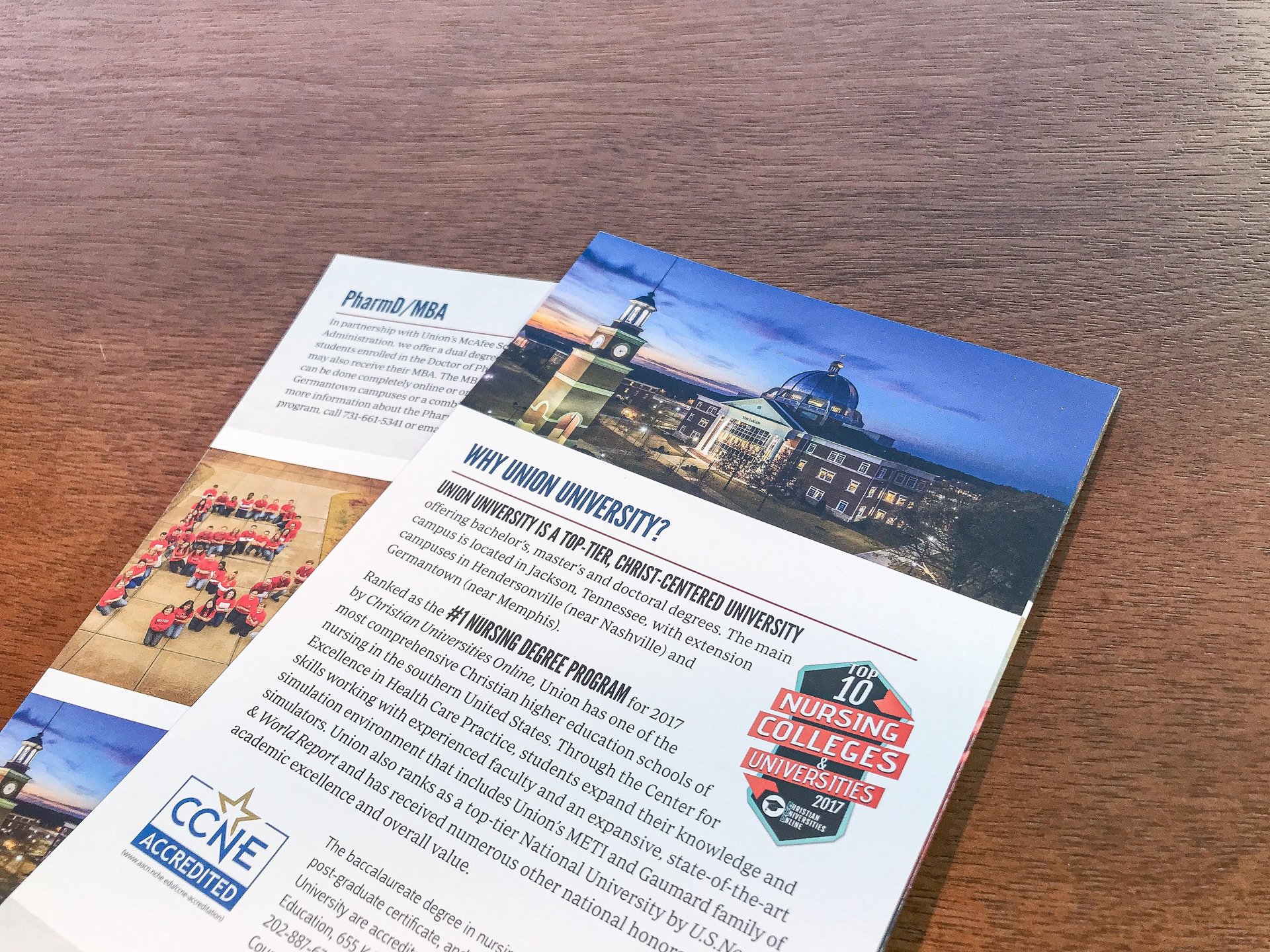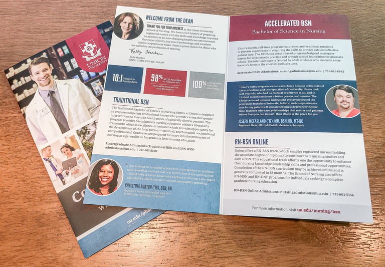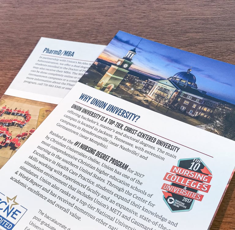 These brochures are each for School of Nursing and College of Pharmacy program.