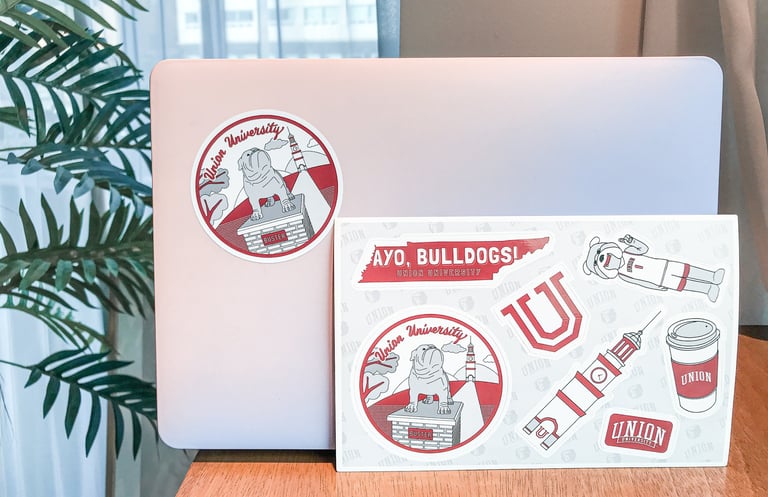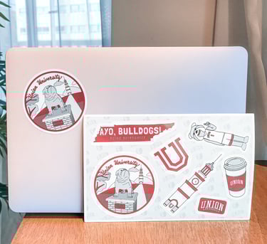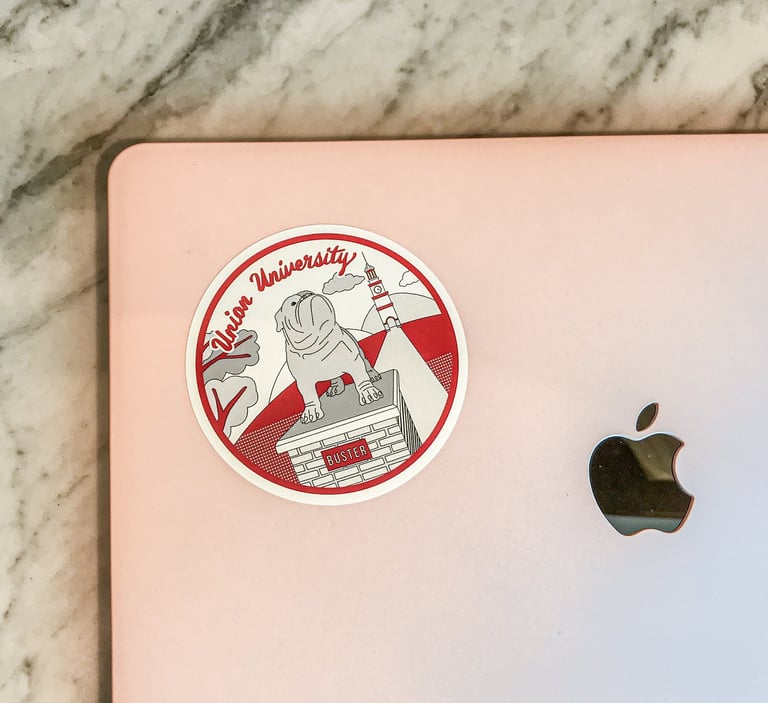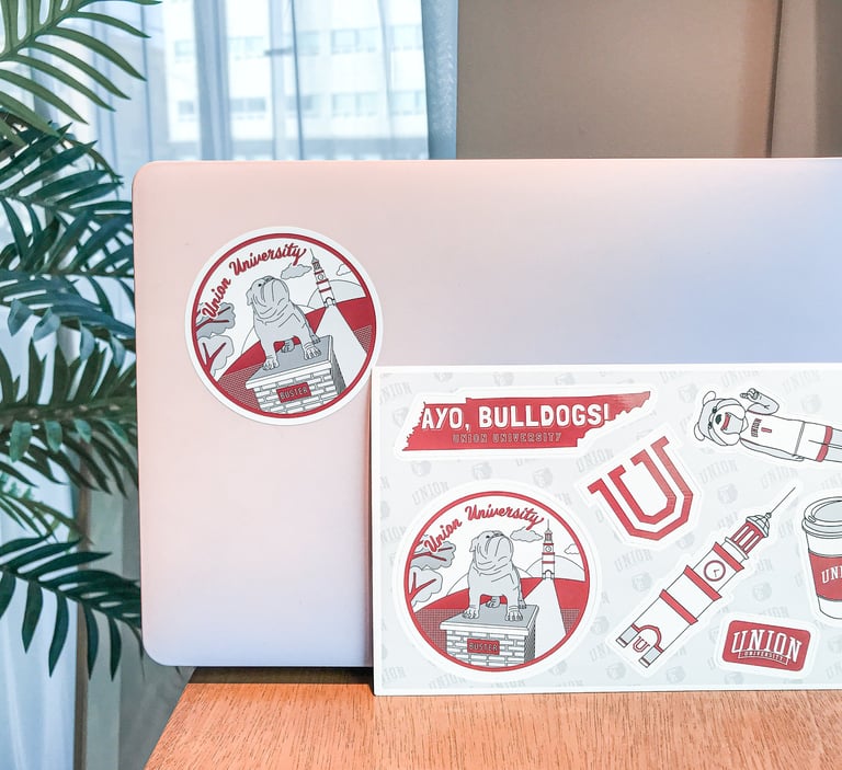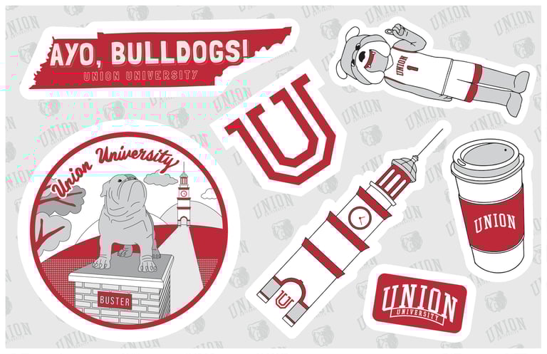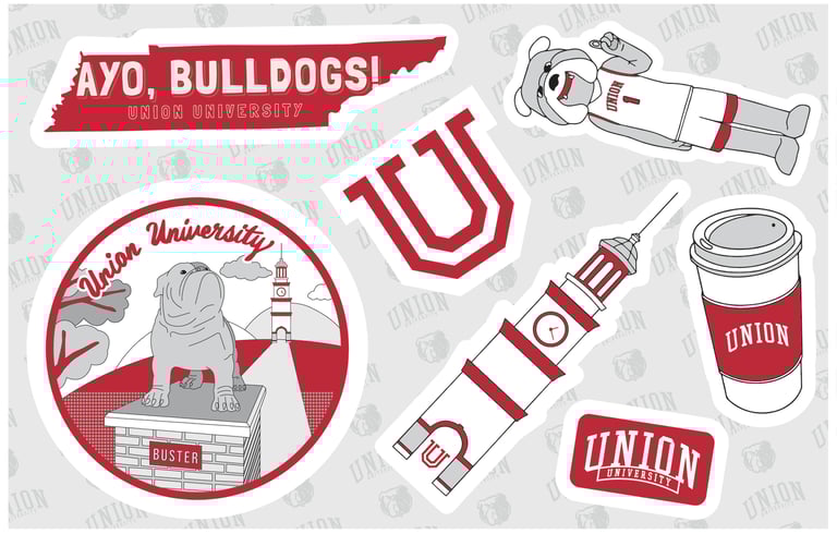 Buster the bulldog is a mascot at Union University. This sticker sheet include their beloved mascot and also Union's landmark such as bell tower.